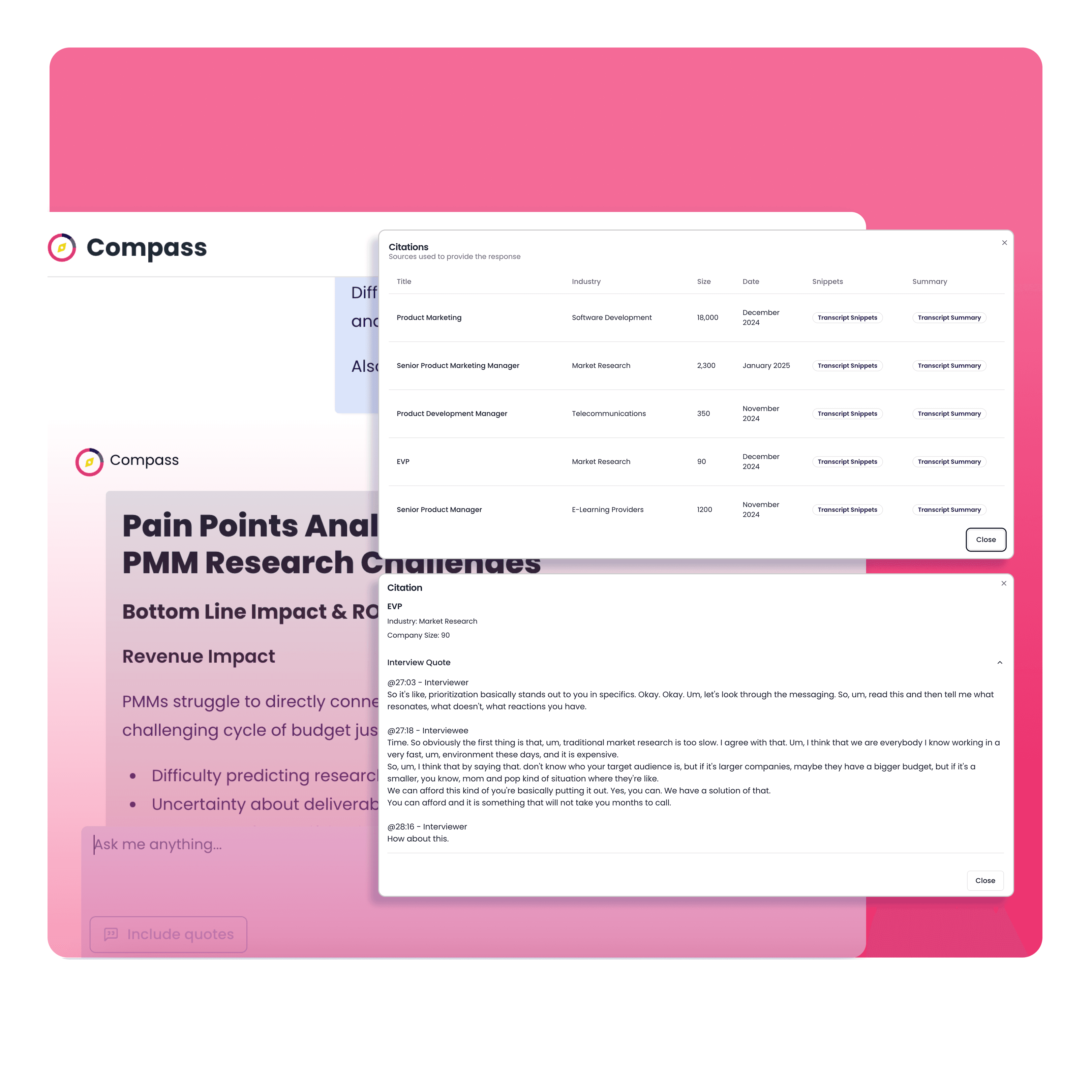 Generated in seconds, from our massive repository of in depth interviews with your target customers!
