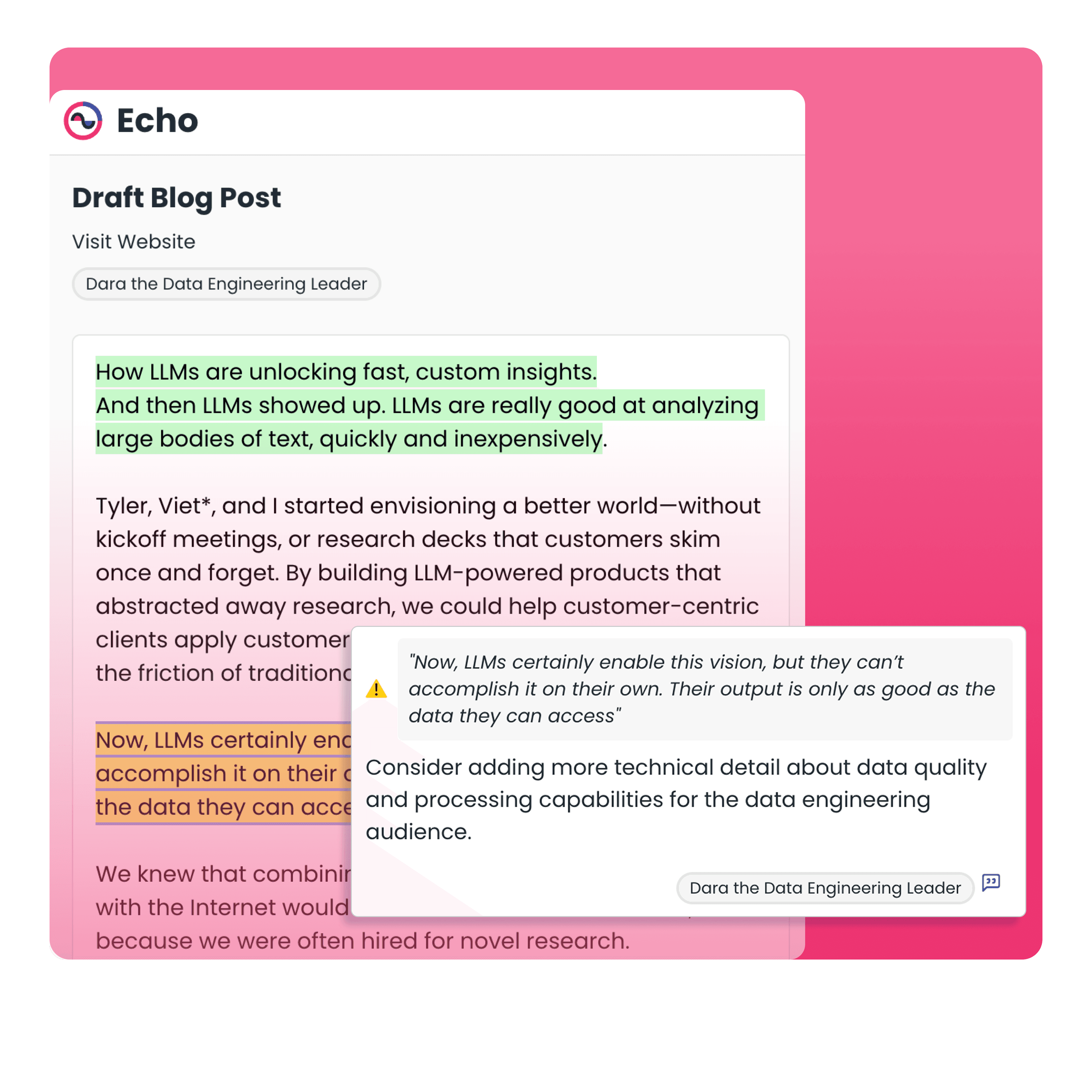 Echo analyzes content by incorporating your organization’s Personas with InsightDB, our rich behavioral dataset.